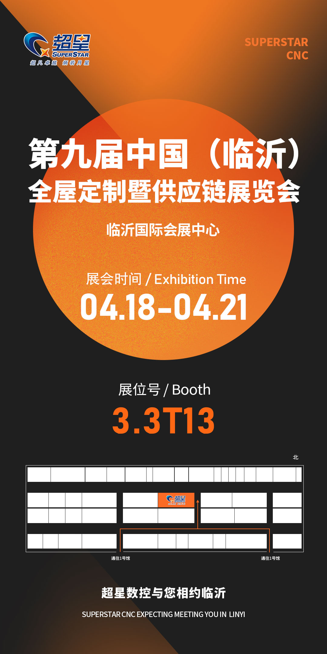 第九屆中國(臨沂)全屋定制暨供應(yīng)鏈展覽會,超星數(shù)控誠邀您共赴這場全屋定制與數(shù)控設(shè)備的跨界盛會,一同見證科技賦能家居產(chǎn)業(yè)的無限可能,攜手開創(chuàng)全屋定制行業(yè)的新篇章!